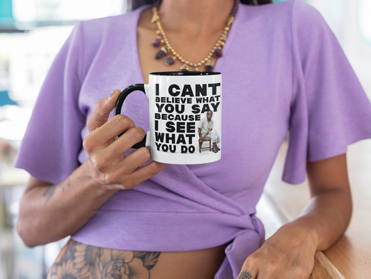 James Baldwin Quote Mug “I Can’t Believe What You Say Because I See What You Do” Black History Coffee Mug